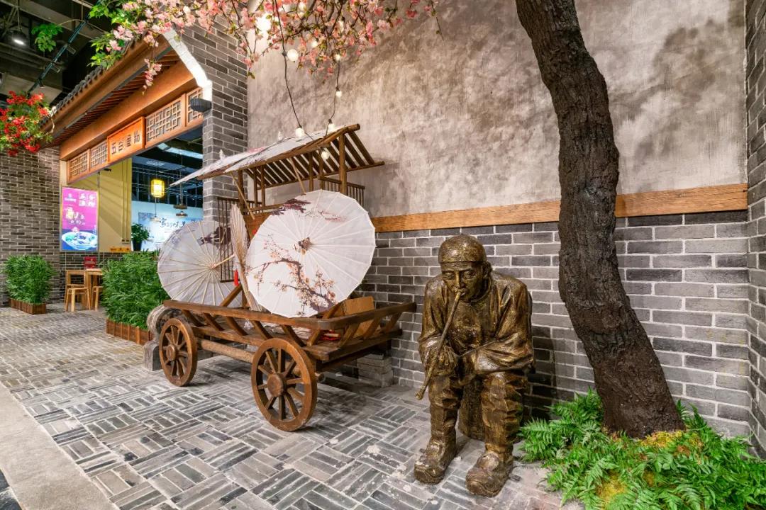 在『銅鞮巷』美食街施工過(guò)程中,港源團隊為了重現千年前的人文環(huán)境,制作仿古部件及石材時(shí)毅然決定尋找老工匠手工訂制雕刻,為42座鋪面分別呈現不同的主題風(fēng)格,以此展現出“一店一品一特色”的街區風(fēng)貌。